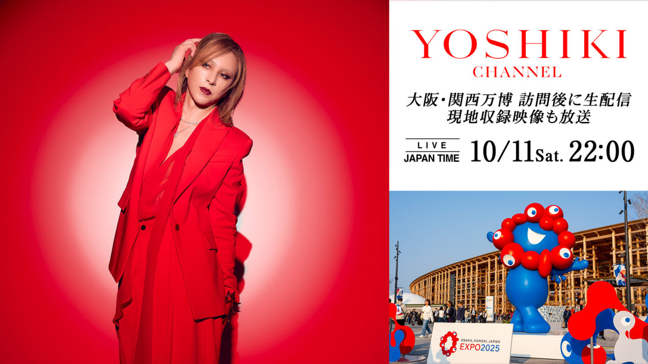 YOSHIKIが、現在開催中の2025年日本国際博覧会「大阪・関西万博」を訪問することが決定した。これに伴い、YOSHIKI CHANNEL では10月11日(土)22:00より、滞在ホテルから東京スタジオを結び、YOSHIKIが万博での体験を語る特別番組を生配信する。配信は、ニコニコチャンネル(日本)およびYouTube Channelメンバーシップ(日本を含む全世界)で行われる。