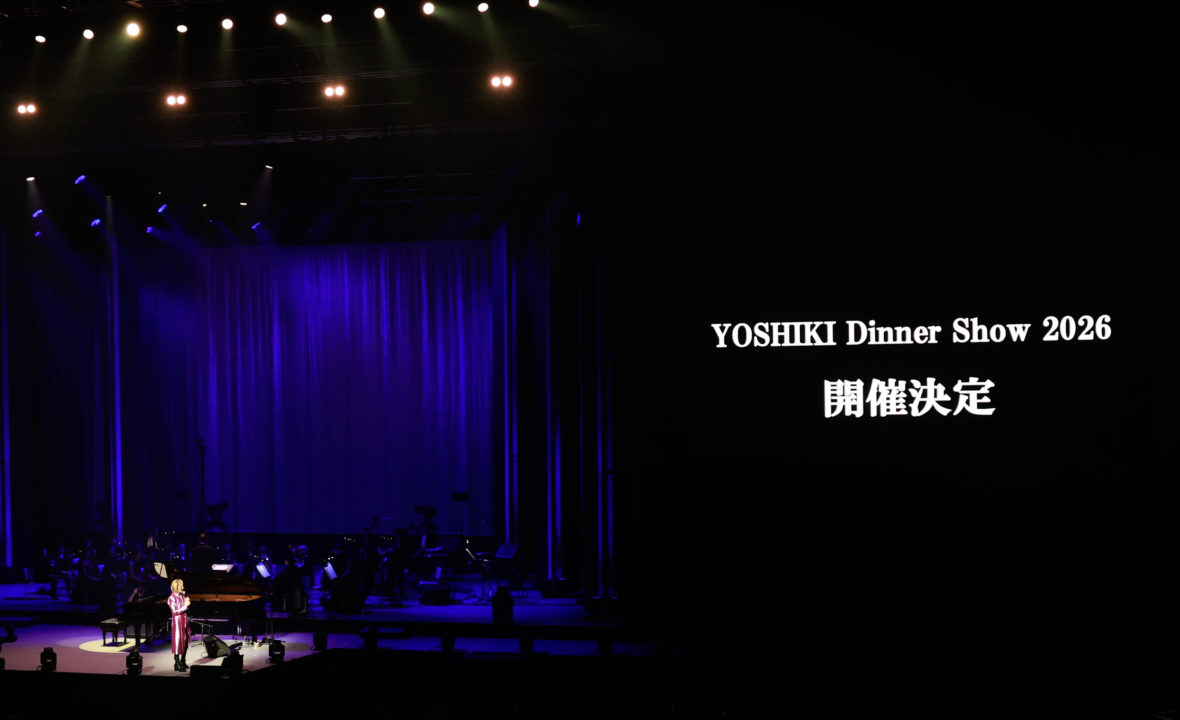 さらに最終公演のステージ上では、8月に開催されるディナーショー『EVENING / BREAKFAST with YOSHIKI 2026 in TOKYO JAPAN』100th ANNIVERSARYの詳細もサプライズ発表され、会場は大きな盛り上がりを見せた。2014年のディナーショー開始以来、記念すべき100回目の公演を含む本ショーは、グランド ハイアット 東京 ボールルームにて、8月28日(金)から30日(日)にかけて全5公演を予定。センターステージ形式により、来場者がより近い距離で音楽と空間を体感できる特別な公演となる予定だ。